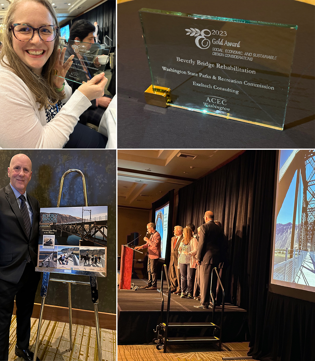 We are proud to receive the Best in State ACEC Washington State Gold Award for Social, Economic and Sustainable Design for the Beverly Bridge Rehabilitation! Congratulations to all the winners, and our team members Aqua Terra Cultural Resource Consultants, Collins Engineers, Inc., Erlandsen & Associates, Inc. and our client partner Washington State Parks and Recreation Commission – what an accomplishment!