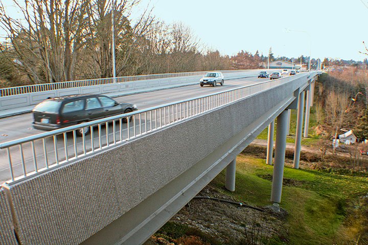 Two structurally deficient timber-trestle bridges spanned Valley Creek and Tumwater Creek on the heavily traveled 8th Street corridor through the center of Port Angeles. With limited funding available, the City needed two new bridges, ideally highlighting this gateway corridor while minimizing impacts to the community, particularly the residents living on a virtual island between the two bridges. Exeltech’s design mitigated cost impacts to the City and simplified and standardized construction when material prices were at their highest. Through careful consideration of site constraints, constructability, and construction phasing, Exeltech was able to create an identical bridge design for both locations, saving considerable design efforts and lowering the construction cost. The two new 758-foot-long, five-span precast prestressed concrete girders avoided the environmentally sensitive creeks and spanned a city street, state highway, and existing utilities, while providing an aesthetically pleasing, cost-effective structure.