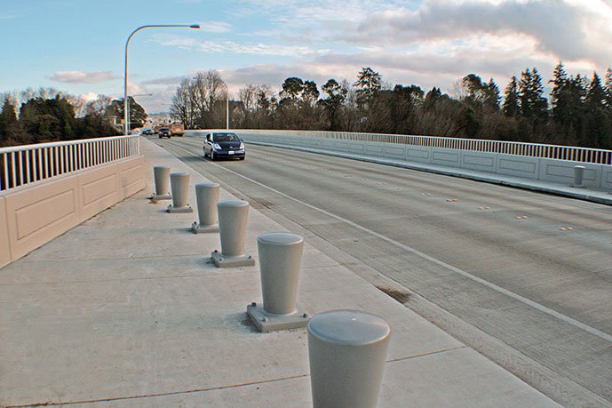 The largest challenges on this project were posed during construction. Extensive coordination and planning was required to ensure safe, successful delivery of the 155-foot girders from Tacoma to Port Angeles and demolition of the existing structures.