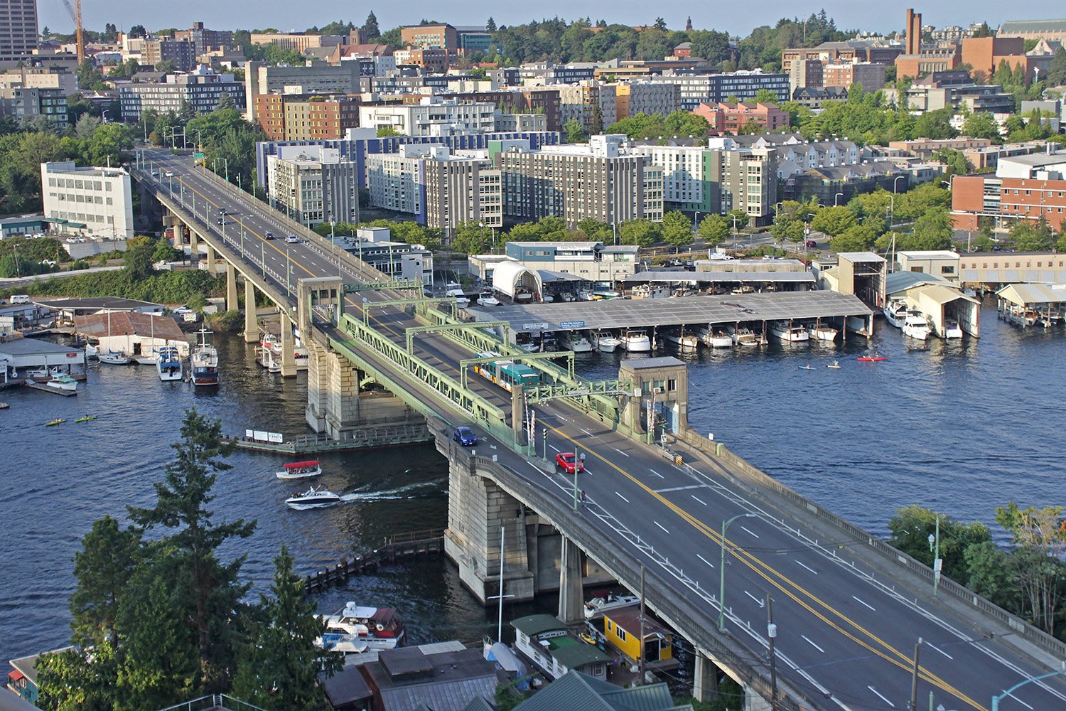 Exeltech designed the seismic retrofit for this double-leaf 300-foot-long steel bascule section of the University Bridge, one of the lifeline structures carrying traffic over the Lake Washington Ship Canal. Opened in 1919, the University Bridge is listed in the National Register of Historic Places.