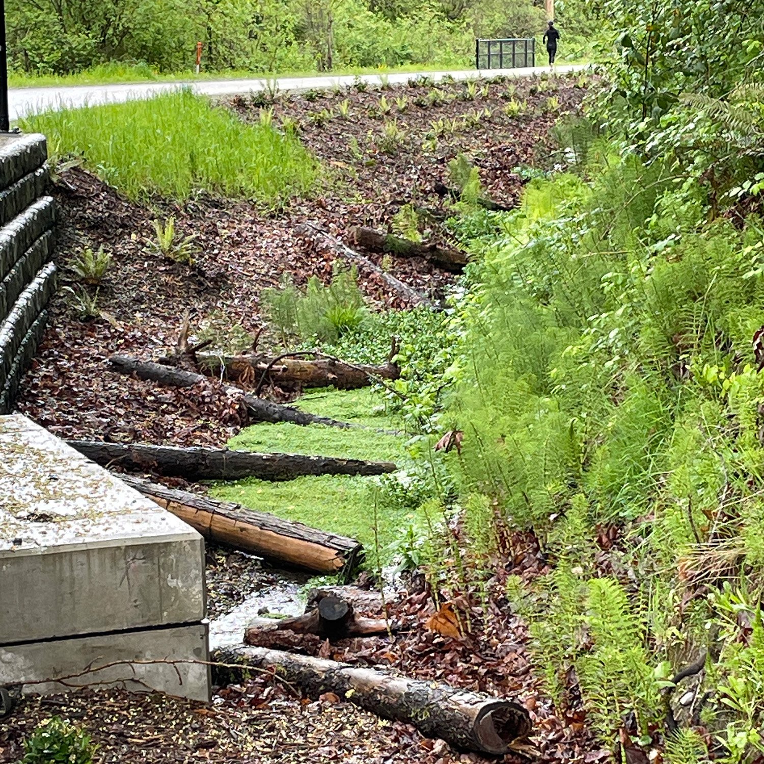 Landscape design included preparing planting plans for trail edge and design and development of plans for the Wilburton Gap Bridge, a planted pedestrian bridge crossing over southbound I-405. Critical and sensitive areas restoration design included buffer enhancements, creek/stream buffer mitigation, and wetland buffer mitigation. Exeltech collaborated with the design team to develop landscape design concepts that met the stakeholders’ requirements and coordinated closely with maintenance staff and the public works staff at King County, City of Bellevue, City of Renton, and WSDOT staff at all project phases to discuss and incorporate maintenance goals and needs into the design, and ensure design guidelines compliance while providing a visually pleasing and functional design.