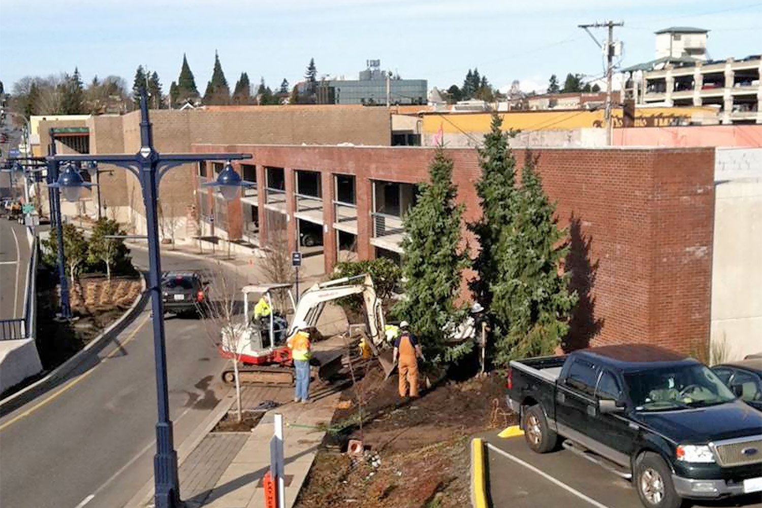 Exeltech provided preliminary and final structural and civil engineering design for this parking structure to support a 10-screen movie theater in downtown Bremerton. The project included a west wing, which consisted of a two-story underground parking structure with an area of approximately 78,000 square feet with 254 parking stalls, and east wing consisting of a three-story parking garage designed to accommodate the planned future addition of a four-story apartment building (with structural design by Exeltech). The structural system is two-way post-tensioned flat slabs to minimize excavation. The top level of the garage in the west wing was designed to accommodate the loading of the cinema level and the roof of the cinema.