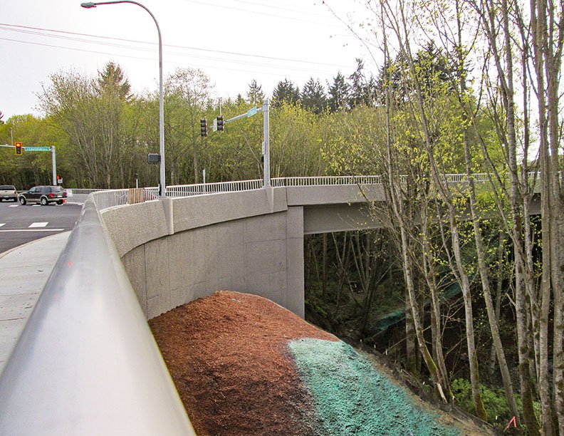 The Lauridsen Bridge is located over Peabody Creek, a trout- and salmon-bearing stream that drains from the Olympic Mountains to the Strait of Juan de Fuca. Through the urbanized areas of Port Angeles, the stream was lacking in large woody material to retain sediments needed for fish spawning and rearing pools. Exeltech developed the habitat enhancement plan and worked directly with the Contractor to implement the plan to ensure proper placement of restoration materials.